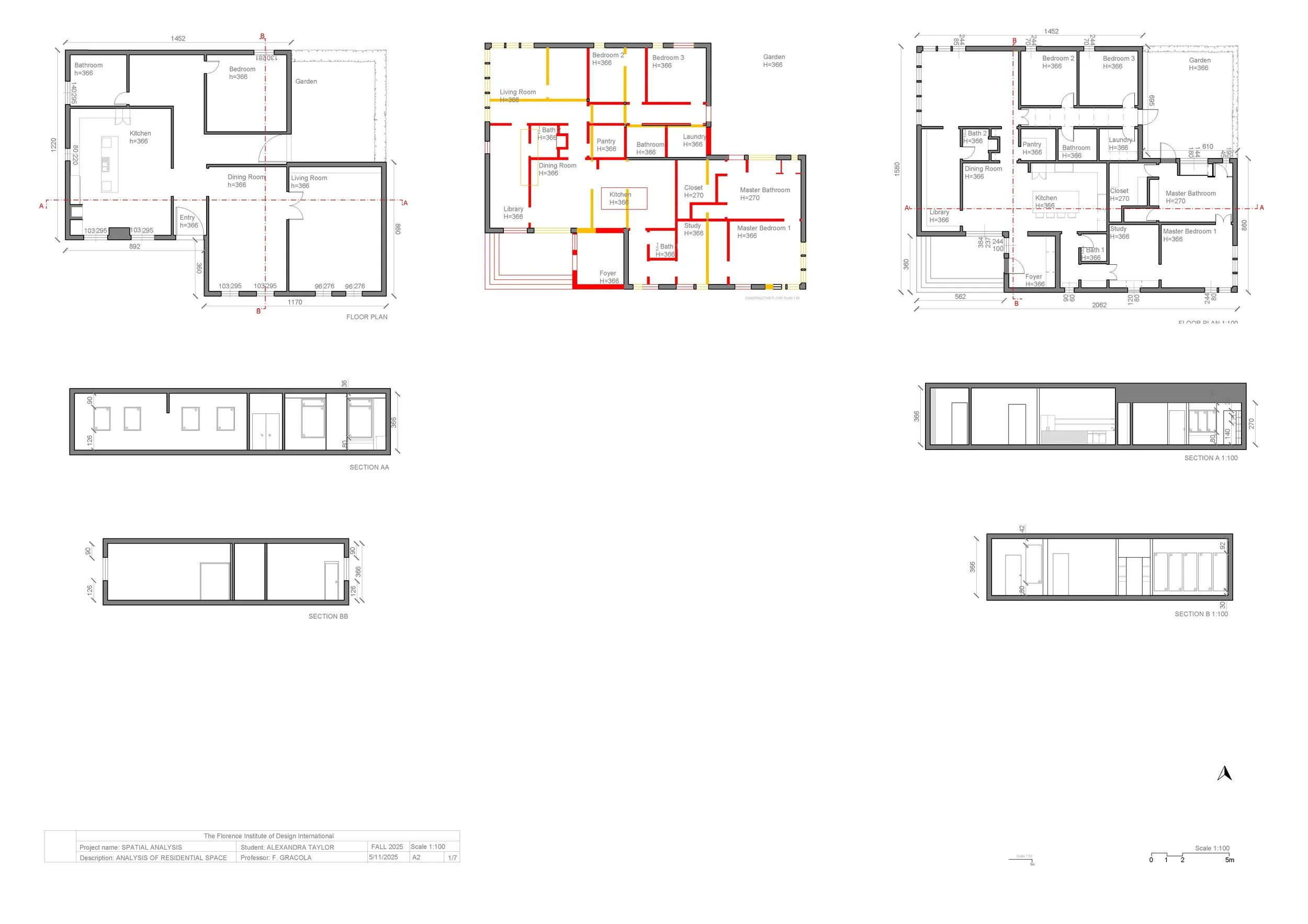 The result is a spatially dynamic home that feels as layered and alive as the people inhabiting it, supported by detailed floor plans, sections, and elevations at 1:100 and 1:50 scale.