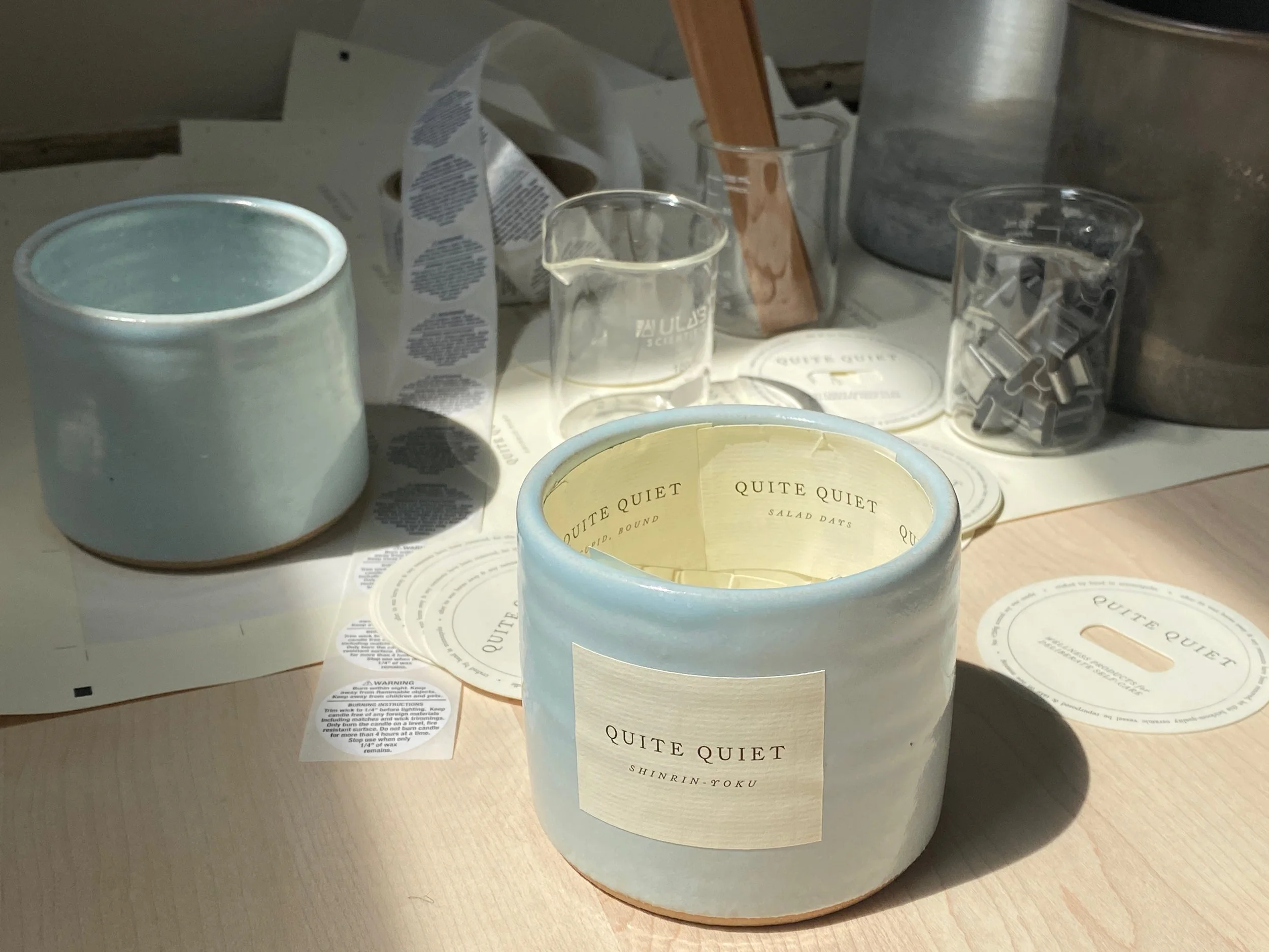 Born from a desire to build something sensory, intimate, and slow, Quite Quiet was a self-initiated candle brand created after graduate school, equal parts creative outlet and entrepreneurial experiment. The name came from a line in The Wall by Marlen Haushofer—“quite quiet”—a phrase that felt both beautiful and haunting within the context of the novel’s plot. It captured what the brand would come to represent: a mood, a pause, a sensory moment held in time.